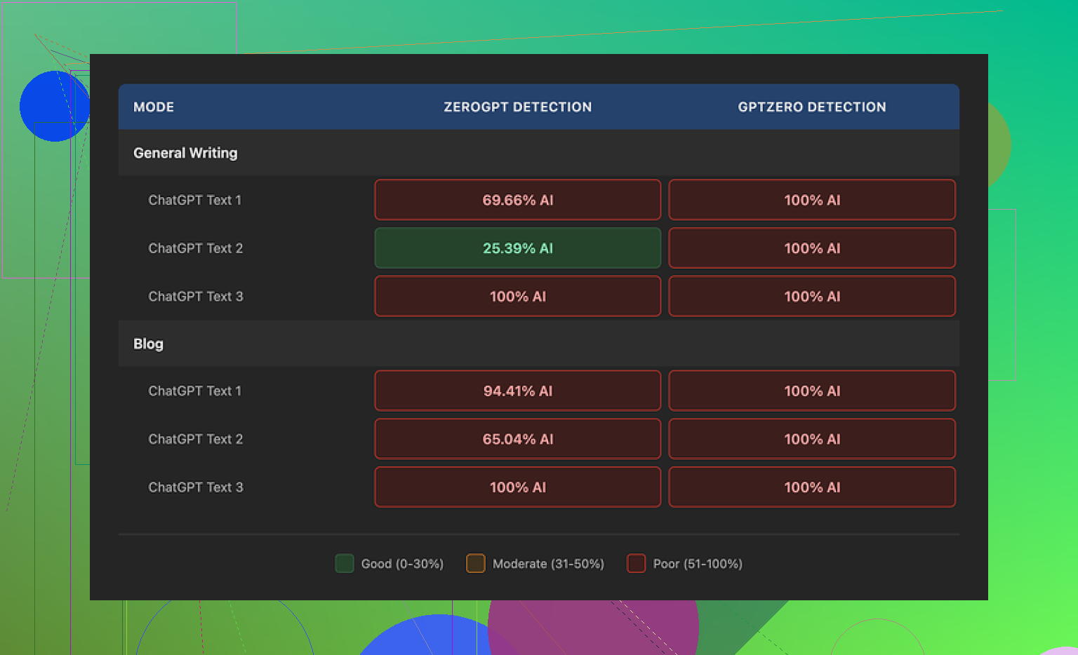 The part I cared about failed, though. I ran the outputs through detectors and got rough results. GPTZero marked everything as 100% AI, both in General Writing and Blog mode. ZeroGPT was less fixed, but still bad, around 25% to 100% AI depending on the sample I pasted in. So if your goal is getting past detection, I would not count on this one.