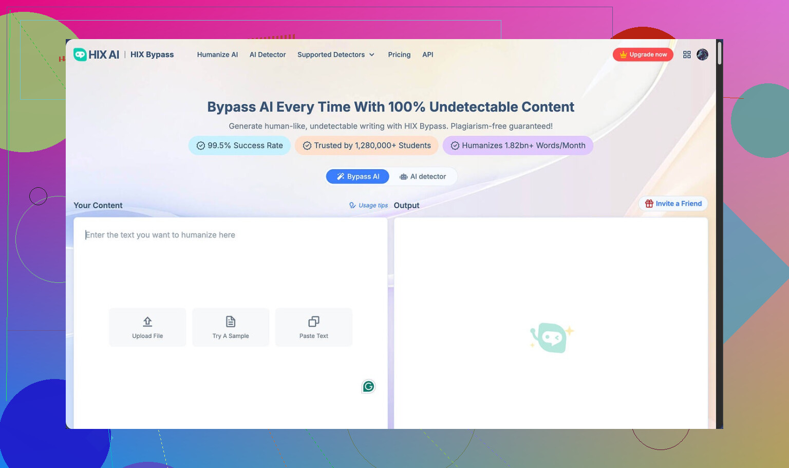 I tried HIX Bypass because the front page looked serious. Big bold “99.5% success rate” claim, university logos (Harvard, Columbia), Shopify logo, the usual credibility dressing. The link I first saw it from was here: