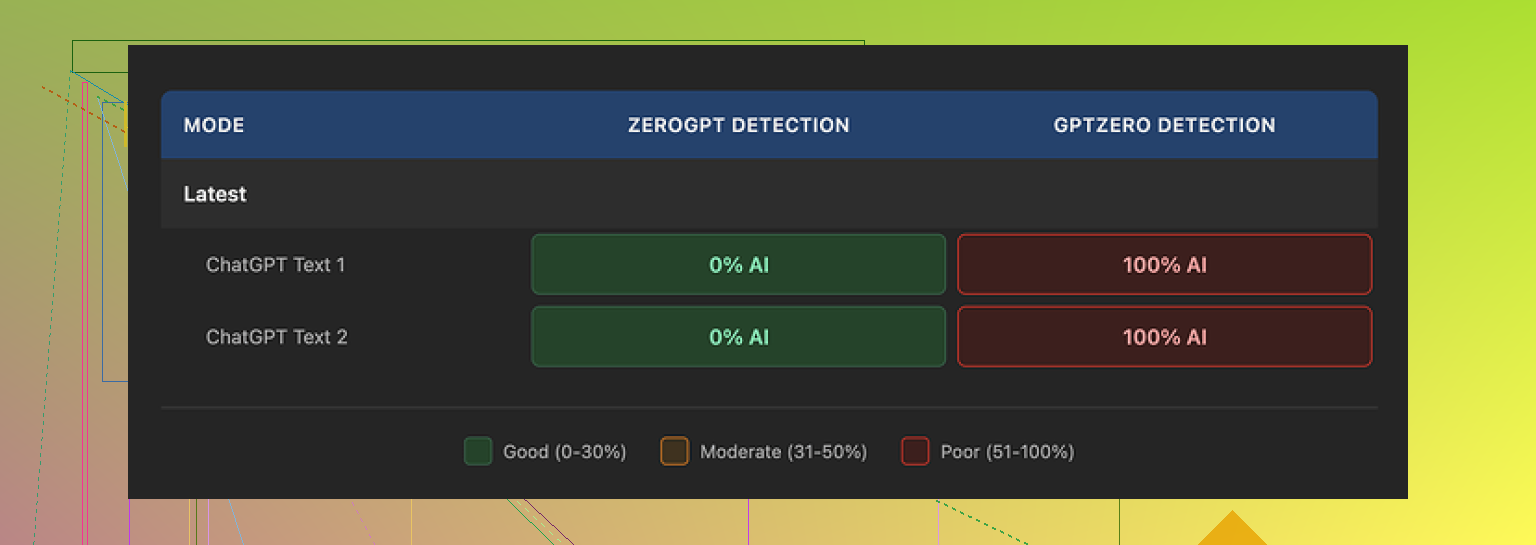 • GPTZero went the opposite direction and labeled both outputs as 100% AI.