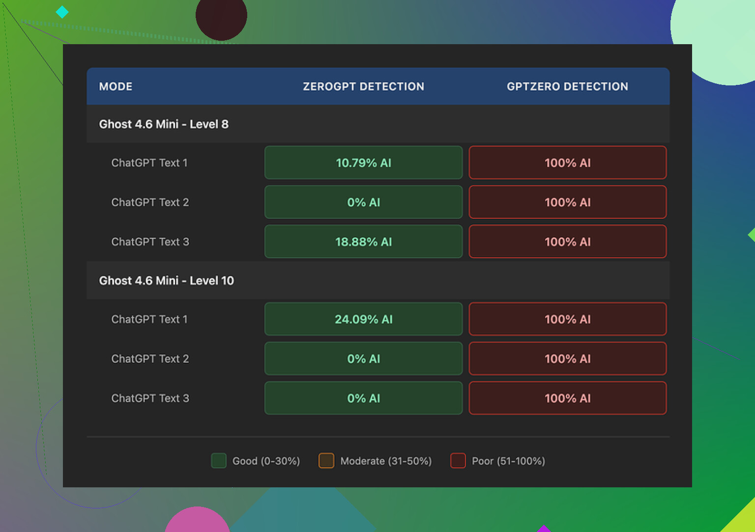 They push two engines (Ghost Mini and Ghost Pro), a 1 to 10 “intensity” slider, plus style presets. On paper it looks impressive. In practice I hit a wall with detection.